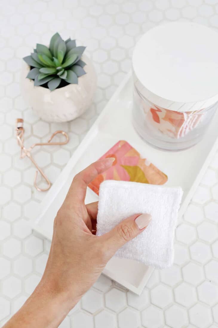 FYI: Your wipes probably won’t stay pure white for very long, but you’ll know they are clean, so that’s the main thing (you could always get a darker fabric too if you didn’t want to notice the makeup staining).